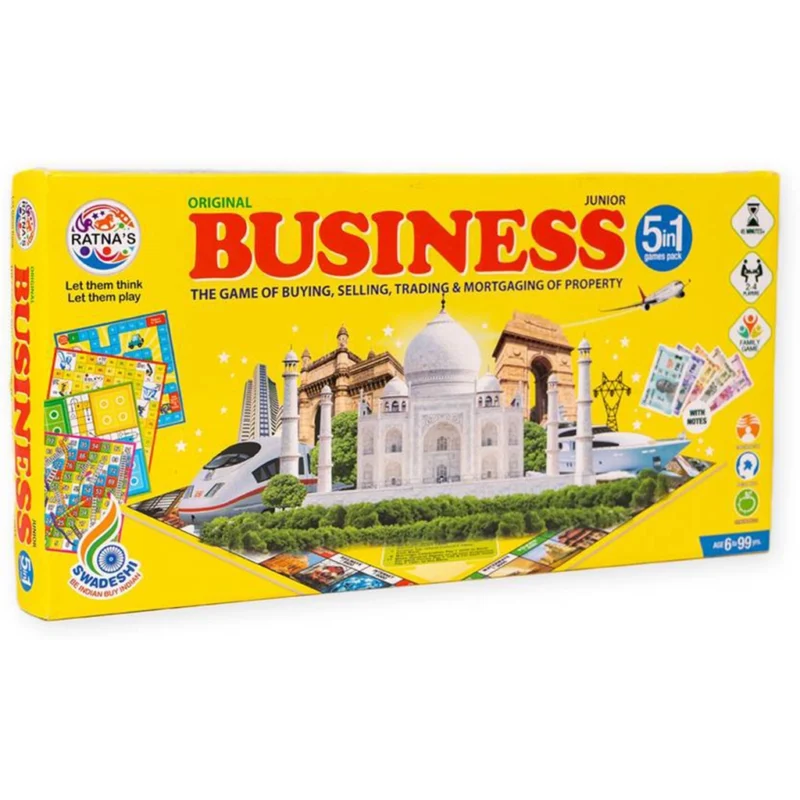 Ratnas Little 5 in 1 Classic Strategy Board Game with Coins – Business, Ludo & More for Kids and Family Fun