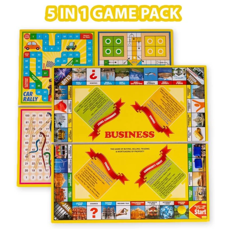 Ratnas Little 5 in 1 Classic Strategy Board Game with Notes – Business & Family Fun Game Set for Kids
