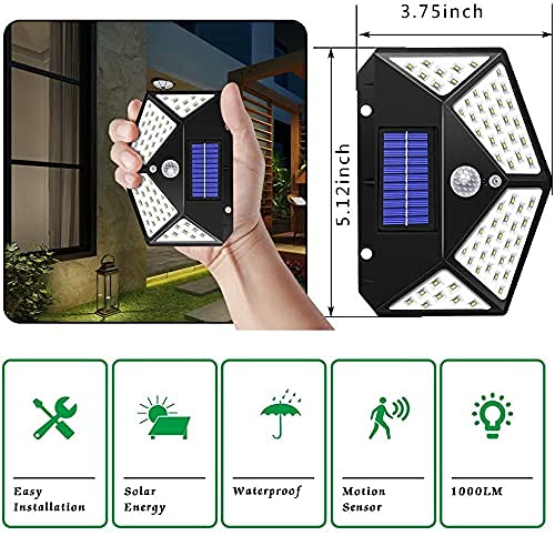 100 bright LEDs, 3 different modes, 1800mAh rechargeable Li-ion battery and 600 Lumens Light, charging these outdoor solar lights under directly sunlight in daytime ( 8-12 hours). 4 sides of super bright light with upgraded solar panel & led bulbs in four sides, this solar light is designed as the 4th generation, which is more energy-saving and provides more powerful illumination for a wider area in it gets solar power. Built-in battery with a 1800mah built-in battery, itтАЩs solar charging, rechargeable and replaceable; it will auto turn on dim light when in darkness or at night, and auto turn off when in daytime or bright area.