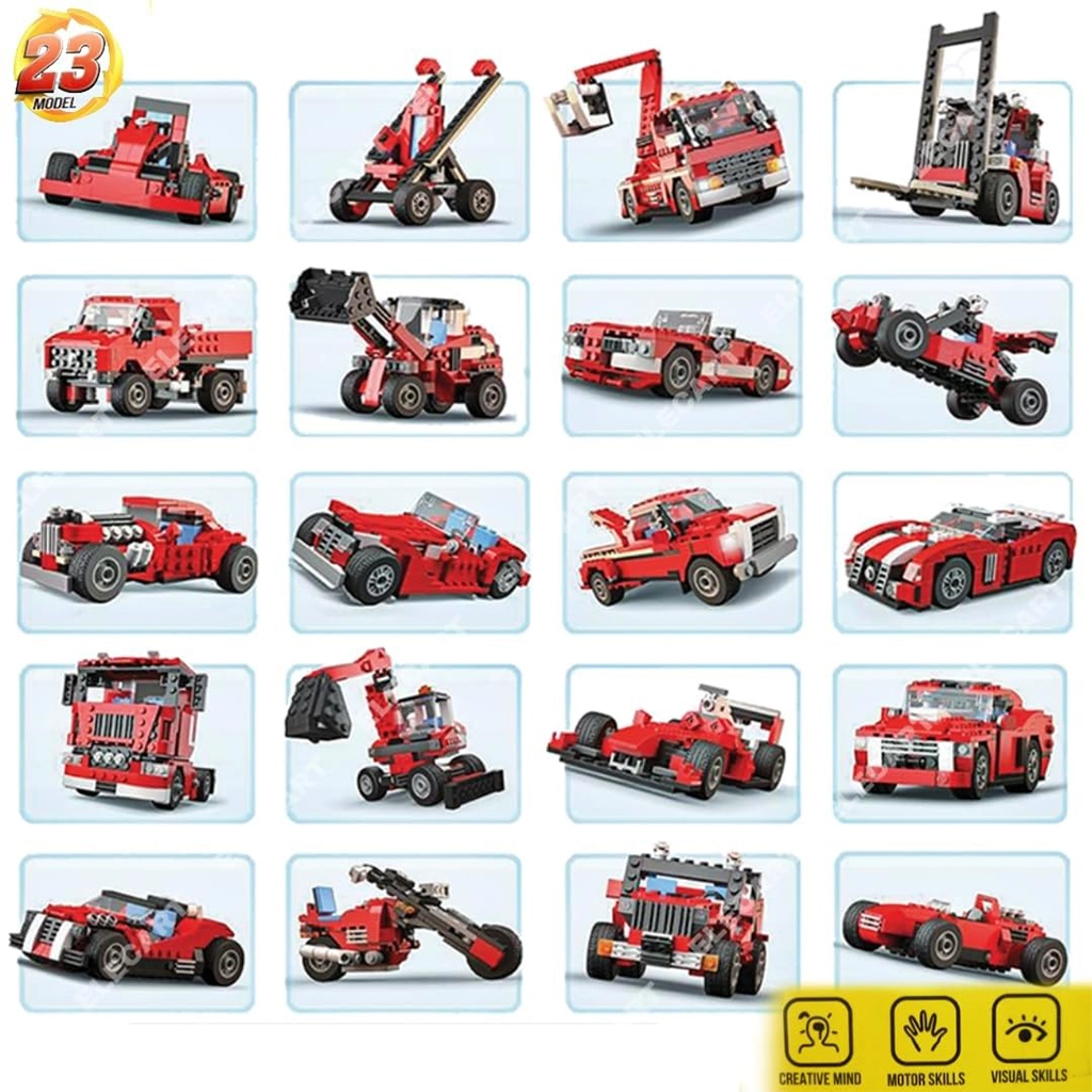 With 23 different vehicle designs to assemble, including sports cars, racing jeeps, and mini trucks, kids stay engaged and inspired through endless combinations.
