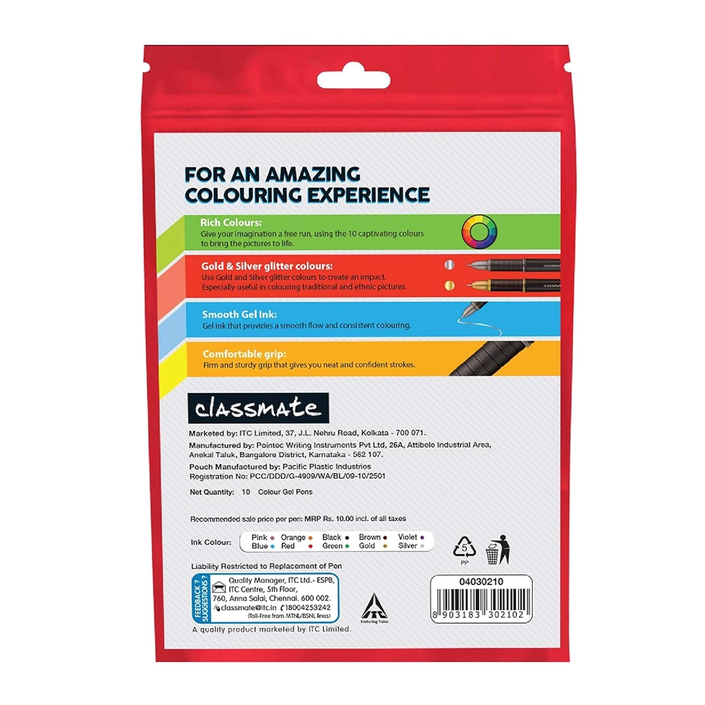 ?? Unleash your creativity! Order the Classmate Octane Colour Burst Multicolour Gel Pens with Gold & Silver Glitter Sparkle (Pack of 10) today and make your projects shine.