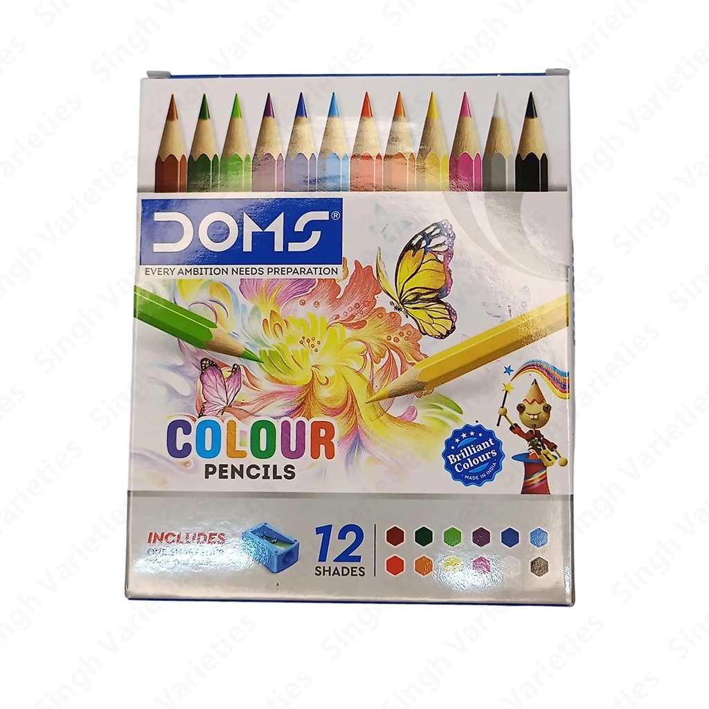 Doms Colour Pencils – Long 12 Shades, Vibrant & Smooth Coloring for Creative Minds (Pack of 1)