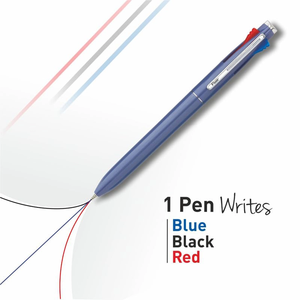 Upgrade your writing experience with the Flair 3-in-1 Retractable Ball Pen, featuring three ink colors in a single pen for maximum convenience! With smooth-flowing blue, black and red ink, this multi-functional pen is perfect for students, professionals and office use. Its sleek retractable design allows you to switch colors effortlessly, making it ideal for note-taking, color-coded writing and creative work.