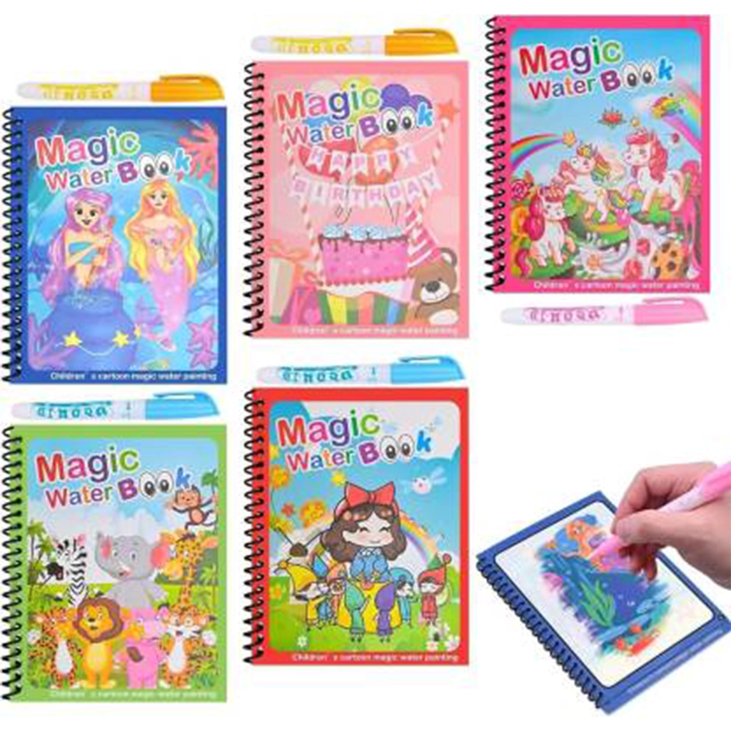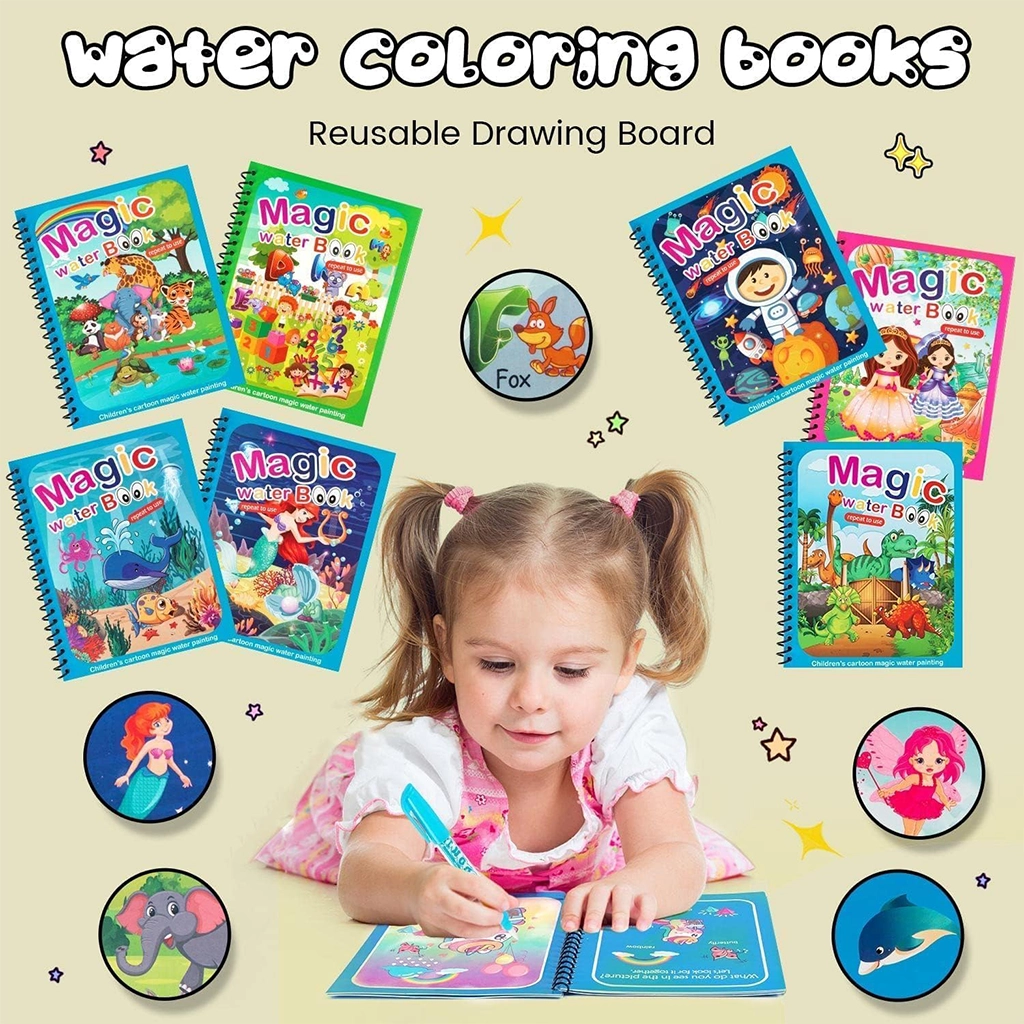 Make learning fun, creative, and mess-free with the Magic Water Coloring Reusable Doodle Book & Magic Pen—the perfect gift for kids!