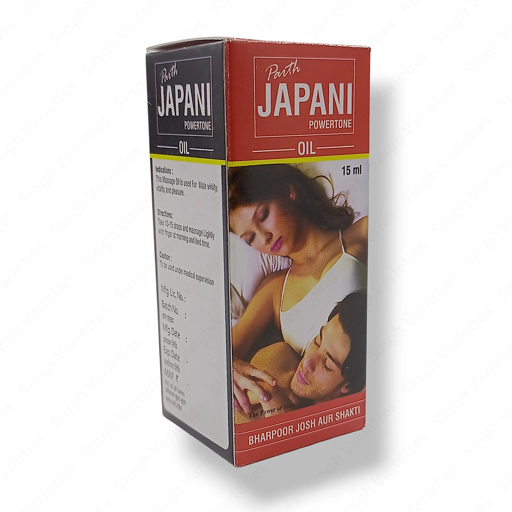 Premium Parth Japani Powertone Oil 15ml – a compact herbal massage oil for everyday wellness. Supports strength, stamina and vitality with a traditional Ayurvedic blend; easy to use, travel‑friendly and for external application only.