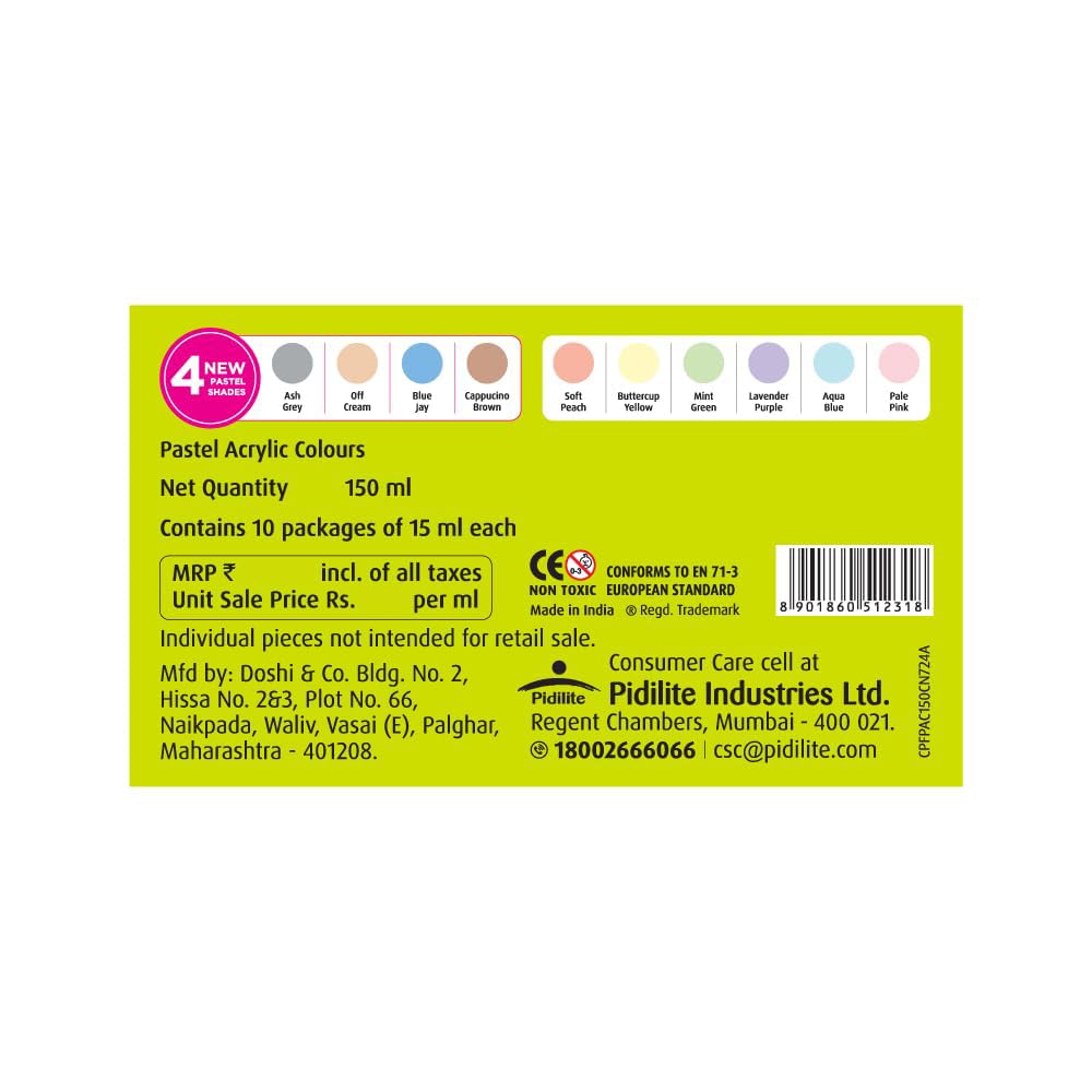 🎨 Pidilite Fevicryl Acrylic Colours Pastel Kit – 10 x 15ml DIY Multi-Surface Paint Set