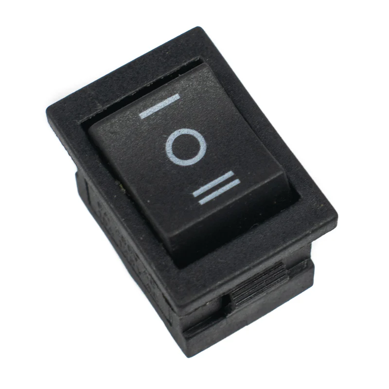 This is a basic DPDT ON-OFF-ON Lock Action Rocker Switch. This 6A 250V AC DPDT ON-OFF-ON Rocker Switch is perfect for controlling power to electronic circuits, robots, etc. This rocker switch has three positions – the default centre position, one on position and another off position. It is not a momentary switch, it remains in the position even after the switch is released.