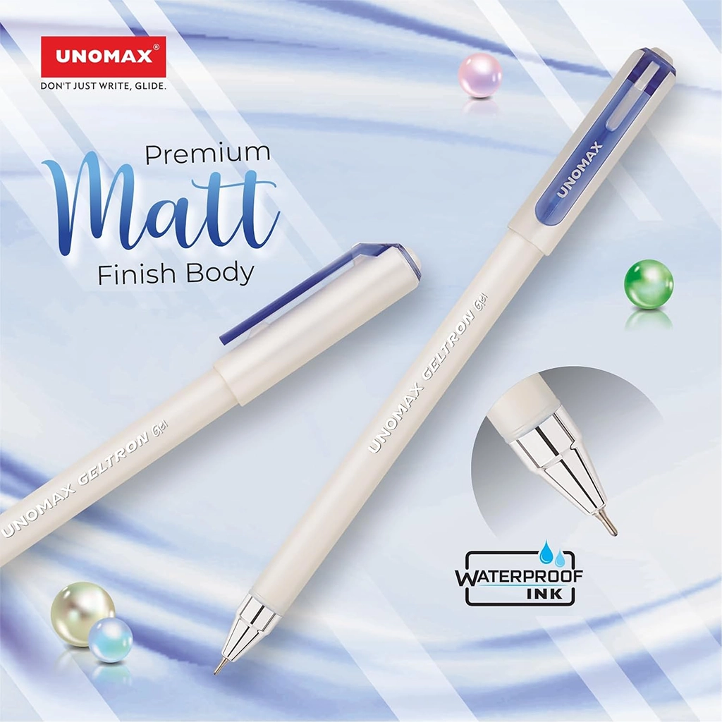 Enjoy smooth writing with Unomax Geltron Pearl Gel Pen. Features pearl finish body, comfortable grip and smudge-free gel ink. Perfect for school, office, exams and everyday writing.