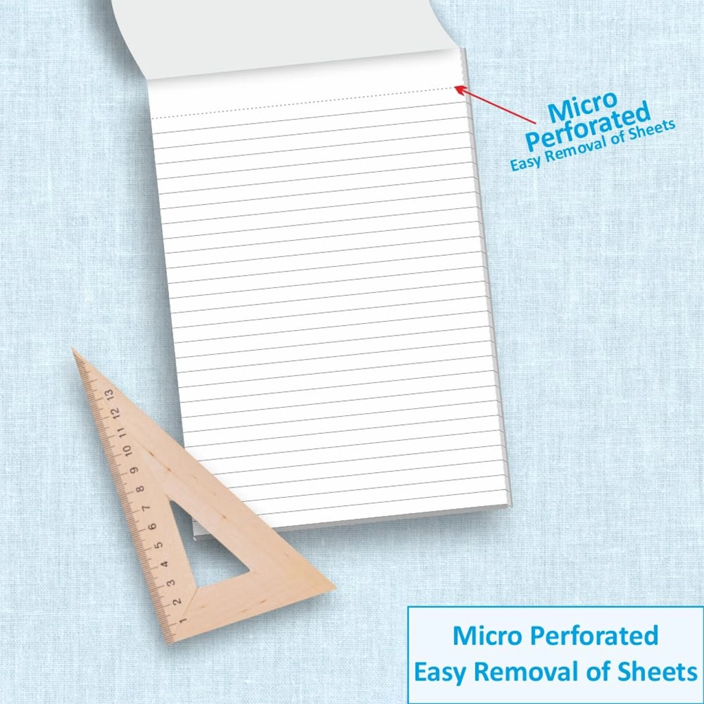 Writing Pad – Wide Ruled Lined Paper, Micro Perforated with Durable Cardboard Backing for School-College-Office (Pack of 1)